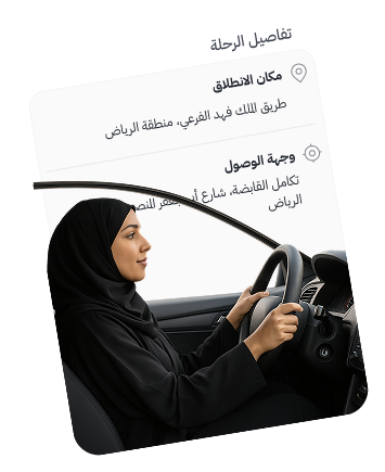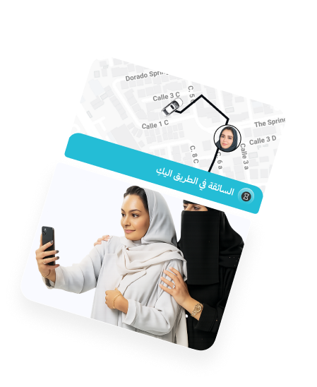 اختاري موقعك، تابعي رحلتك مباشرة، وتواصلي مع السائقة بسهولة.